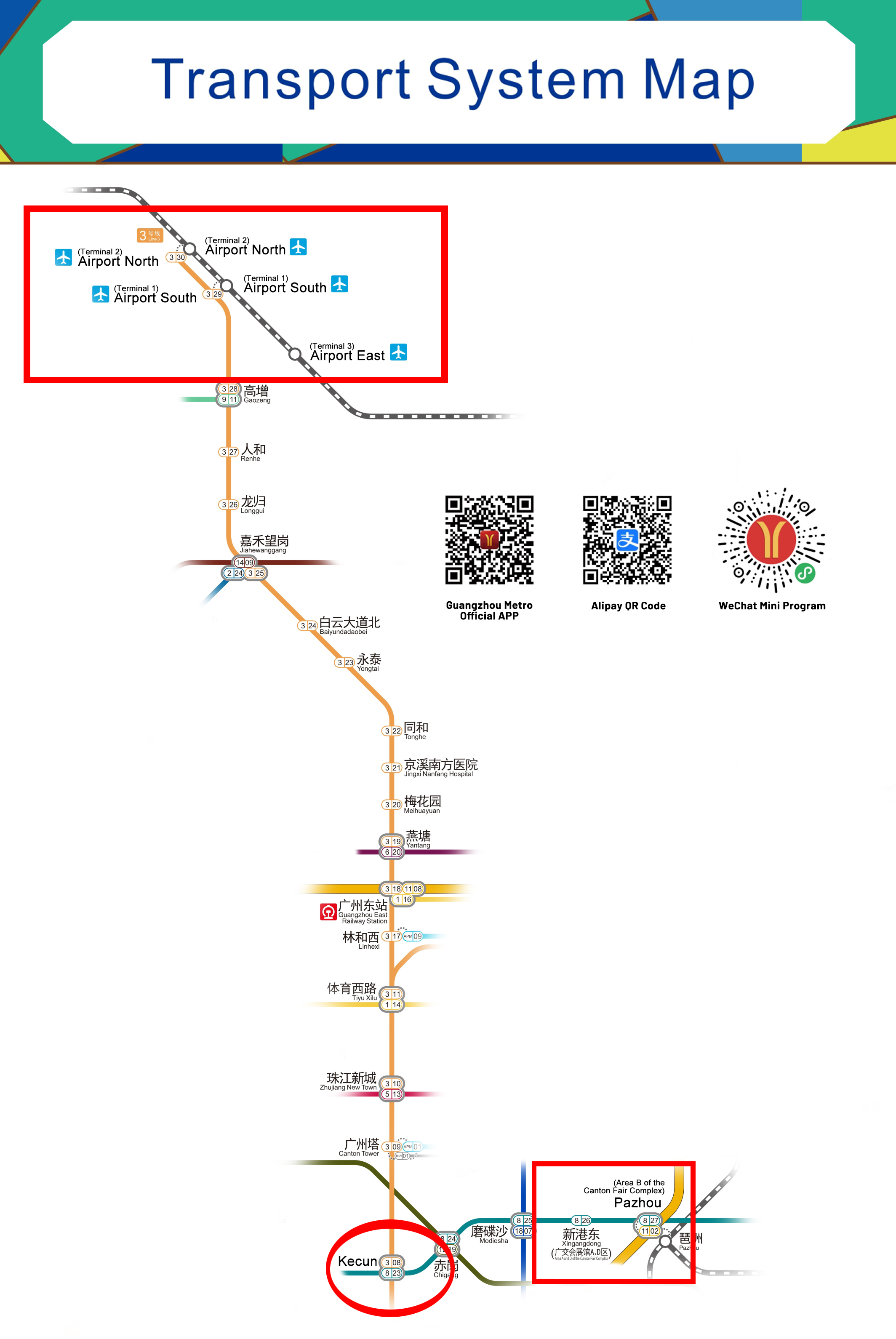 By Metro: Guangzhou Baiyun International Airport to Canton Fair Complex recommended route