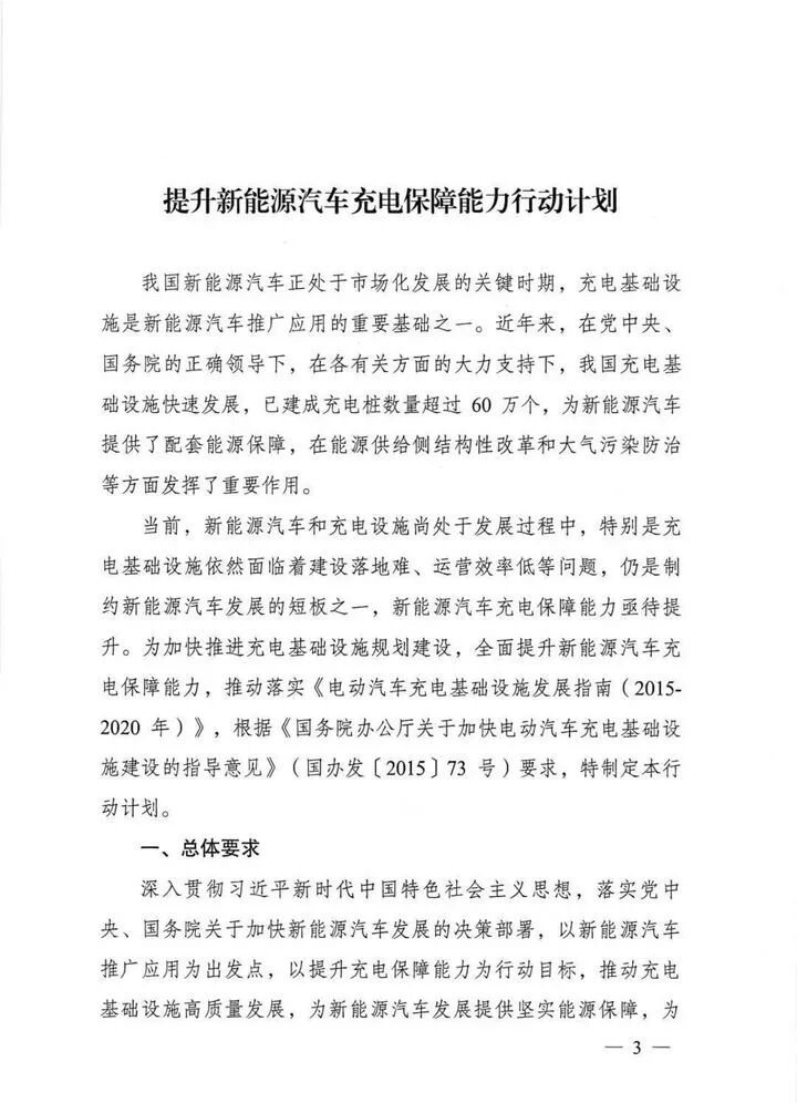 以下为关于印发《提升新能源汽车充电保障能力行动计划》的通知全文: